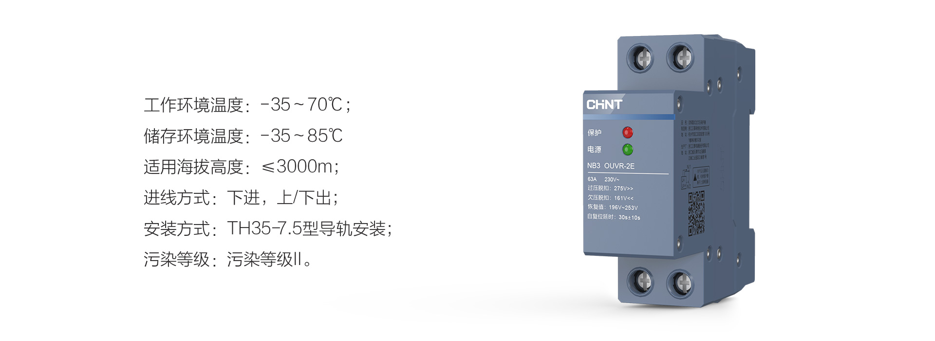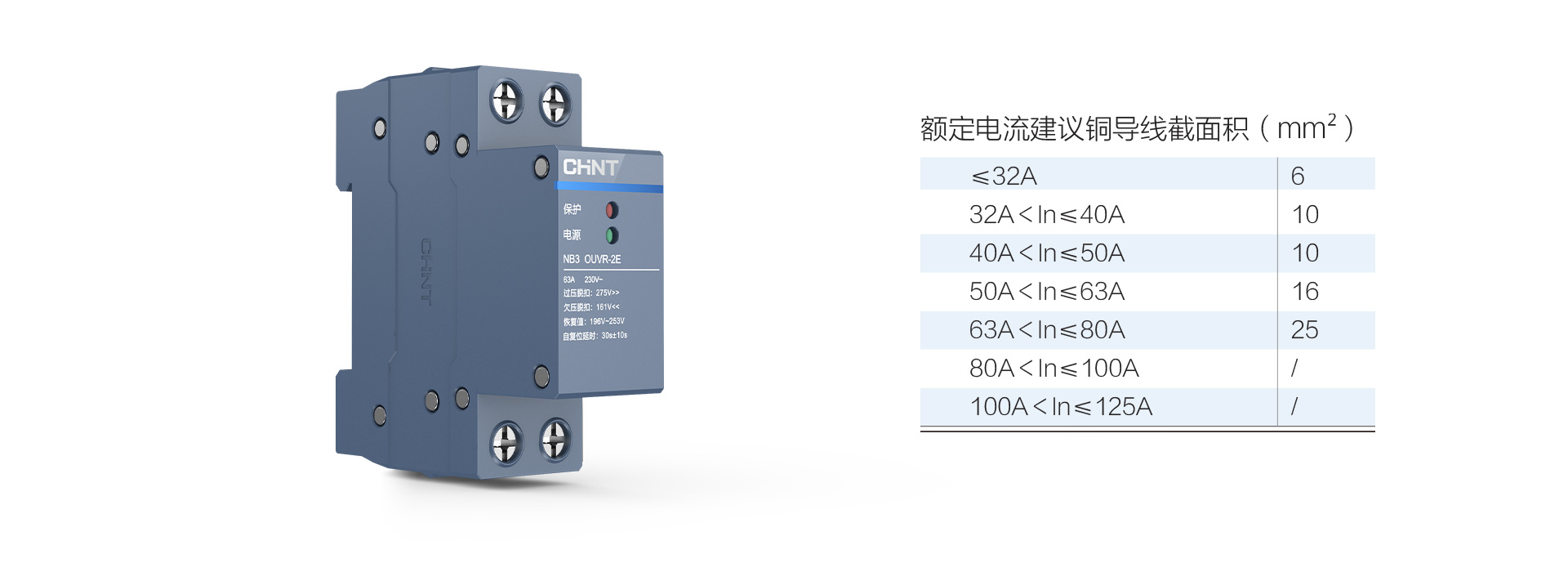 正泰泰極自復(fù)式過欠壓保護(hù)器OUVR-2E適用于交流50Hz,額定電壓至230V,額定電流至80A及以下的用戶或負(fù)載。主要用于住宅分戶箱或其他需要過壓保護(hù)和欠壓保護(hù)的配電線路。